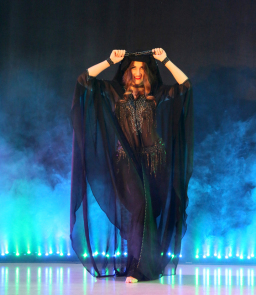 Im Saal ertönen Glocken und die Melodie ist Ihnen sofort bekannt. Eingehüllt in ein dunkles Gewand schreite ich durch die Gäste. Fackellicht weist mir den Weg durch den dunklen Raum. Eindeutige Gitarrenklänge lassen das Publikum aufhorchen. Mein Kostüm ist schwarz, mein Makeup dunkel... ich ziehe die Zuschauer in meinen Bann. Nach dem ersten Stück ertönt ein Pfeifen und es folgt ein feuer roter Engel... auch diese Melodie kennen Sie sofort. Den Abschluss in diesem Programm kündigt dann wieder ein Gitarrensolo an. Dieser Höhepunkt lässt die Haare fliegen und unendliche Shimmies, Bauchwellen und seeehr körperbetonte Bewegungen lassen den Puls nach oben schnellen.